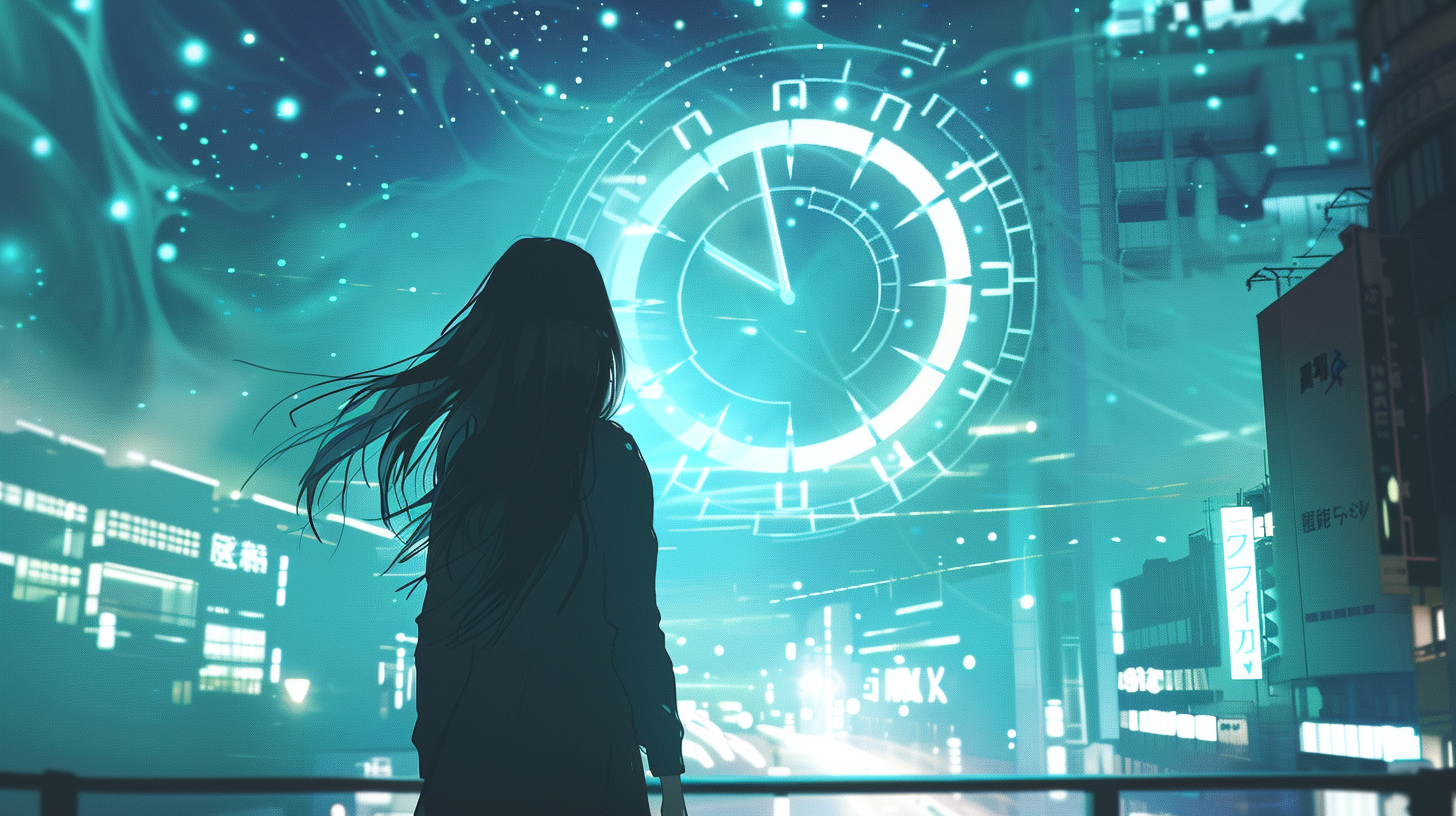 近未来の象徴の時計と少女